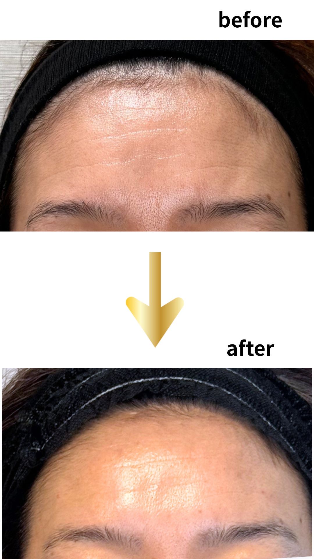 自分でも驚いていますが、子供のころからの表情のクセで出来た深く刻まれた額のシワも前より目立たなくなってきています。