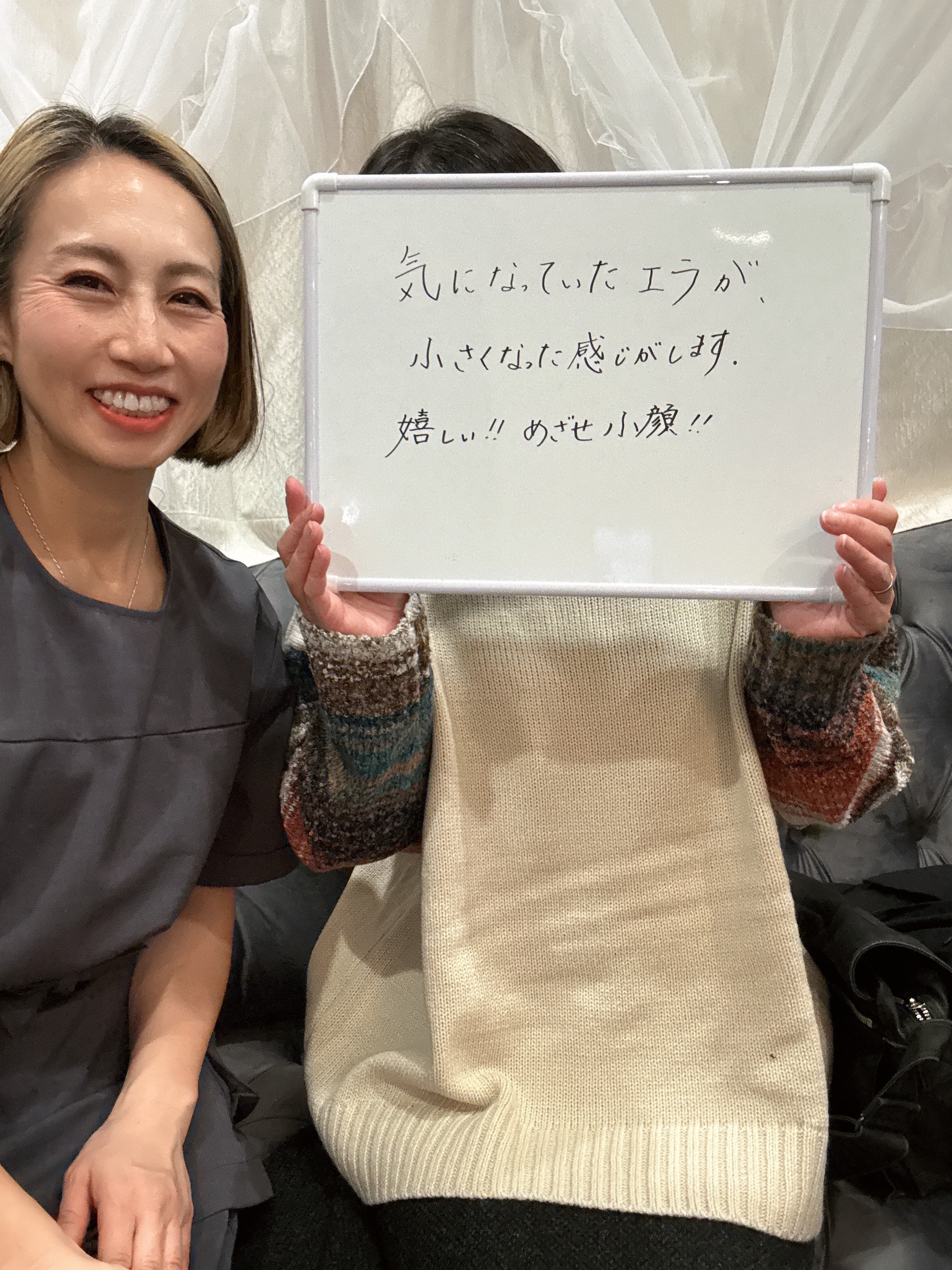通って2年たちましたが、長年、自分の顔のたるみが気になっていて通ううちにたるみが少しずつ目立たなくなっていて段々と小顔に近づいている気がします。