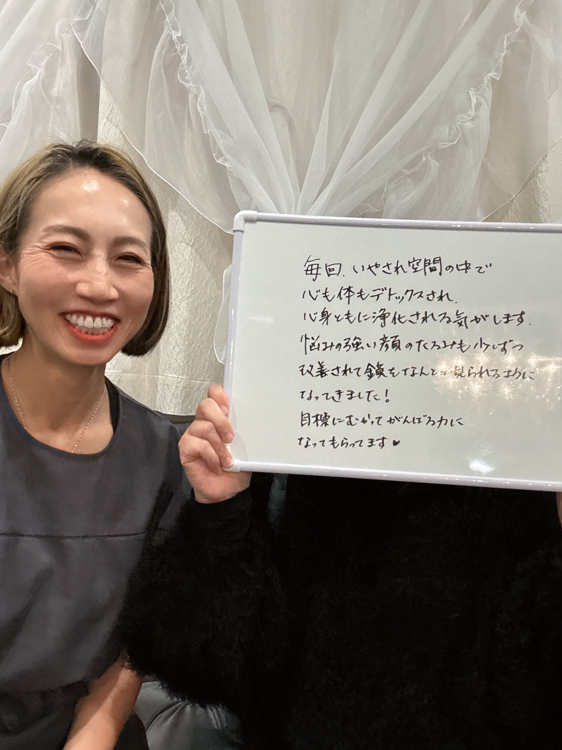 仕事や家族のことで悩むことが多くなって、心が落ち込んでいる時に自分の顔も酷くて、自分へのご褒美と思って体験したのが